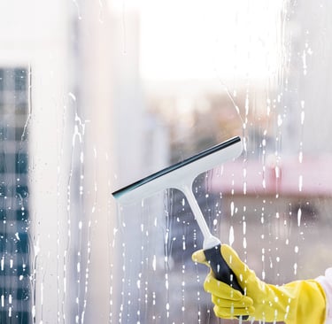 Nettoyage de fenêtres, baies vitrées, vitrines, vitres de cage d'escaliers.