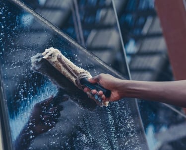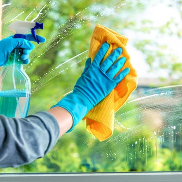 Nettoyage de fenêtres, baies vitrées, vitrines, vitres de cage d'escaliers.